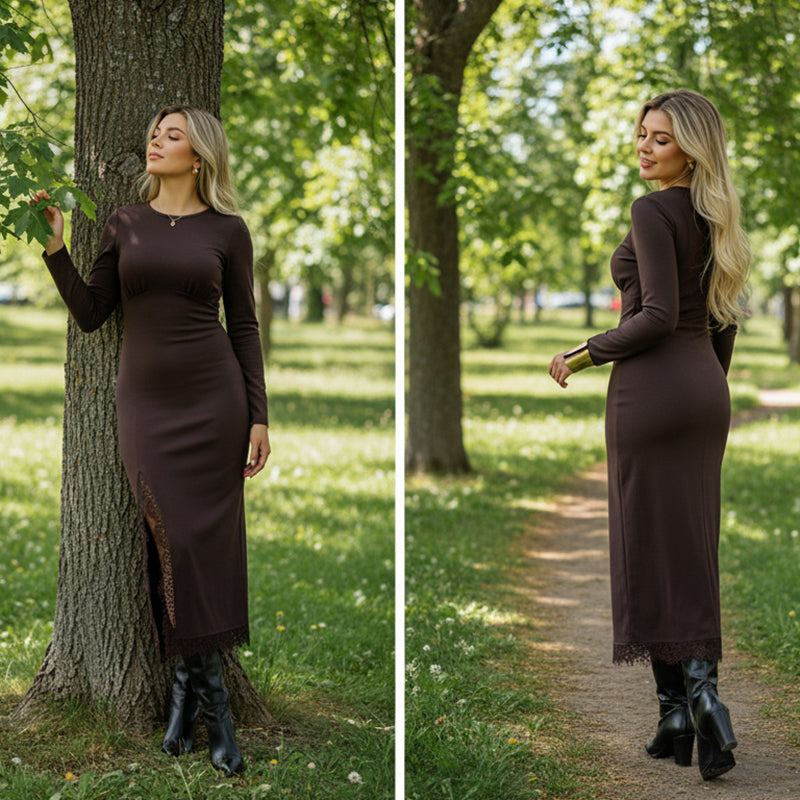 1 x Elegant Figurnära Klänning med Spetsdetalj