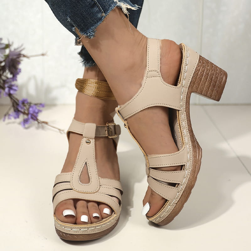 BLOCKKLACK FĂR MER STYLE: Blockklackens design ger extra stil och ett modernt utseende, vilket gör dessa sandaler perfekta för bĂ„de avslappnade och finare tillfĂ€llen.