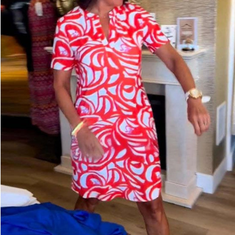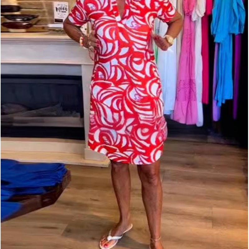 đžLAST DAY KAMPANJ - 50% RABATTđžKortĂ€rmad tryckt V-ringad modeklĂ€nning