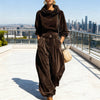 AVSLAPPAD, GENERÖS PASSFORM – Den löst sittande huvtröjan och byxorna ger obegränsad rörelsefrihet och en snygg, avslappnad silhuett. Denna design garanterar att du håller dig bekväm och ser chic ut utan ansträngning, oavsett om du gör ärenden eller kopplar av hemma.