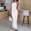 Sexig maxiklänning med plisserad textur, halterneck och rygglös
