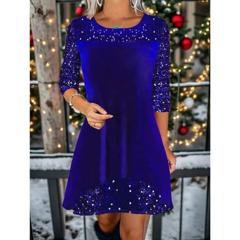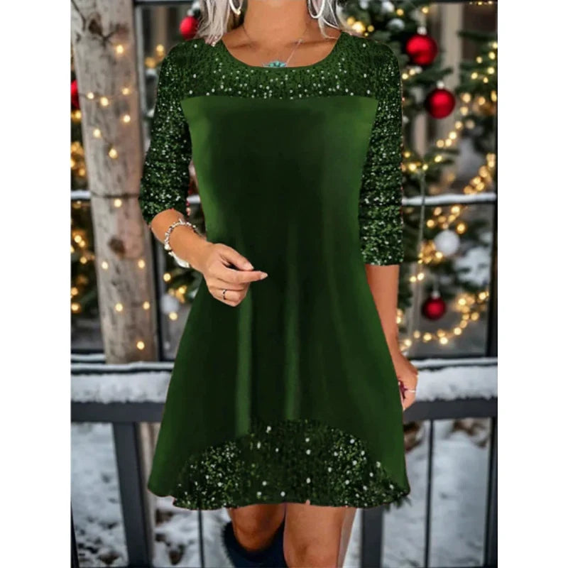 1 Klänning med rund hals och paljetter för kvinnor.