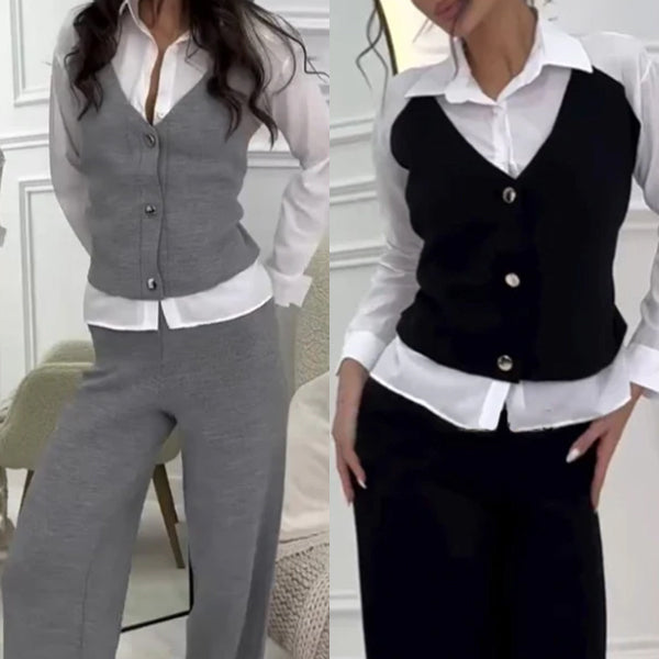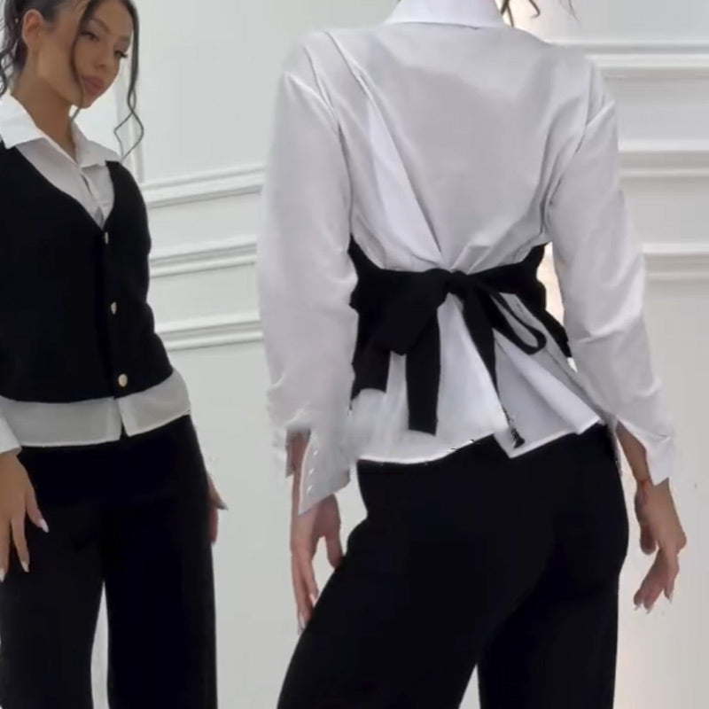FAUX TWO PIECE DESIGN – Det här setet har en kreativ tvådelad fuskdesign som enkelt kombinerar en långärmad skjorta och väst med en elegant lagereffekt. Det ger dig utseendet av att bära en skjorta och väst kombination utan att behöva flera delar, vilket gör det till ett otroligt praktiskt och elegant val för vardagsbruk.