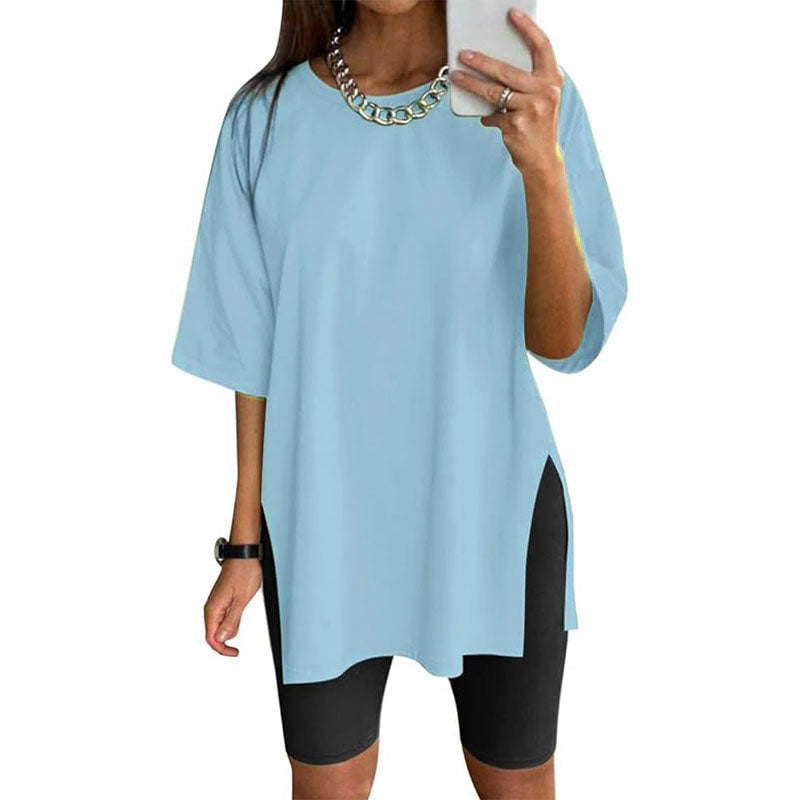 Paketet innehÄller : 1 * Casual  lös sidoslits  kortÀrmad t-shirt för kvinnor