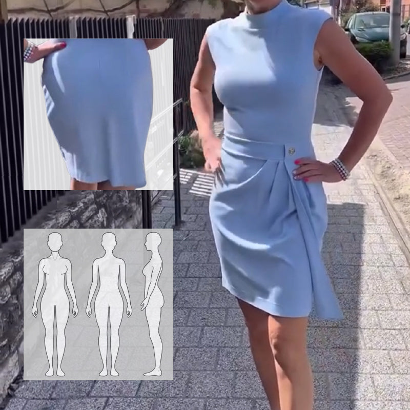 FLATTERANDE SILHUETT: Strategiskt placerade rynkningar i midjan skapar en rynkad effekt som framhäver kurvorna utan att dra ihop dem. Denna smarta skräddare förlänger visuellt överkroppen samtidigt som den ger bekväm stretch, vilket tillgodoser naturliga kroppsrörelser utan att kompromissa med klänningens strukturerade form.