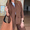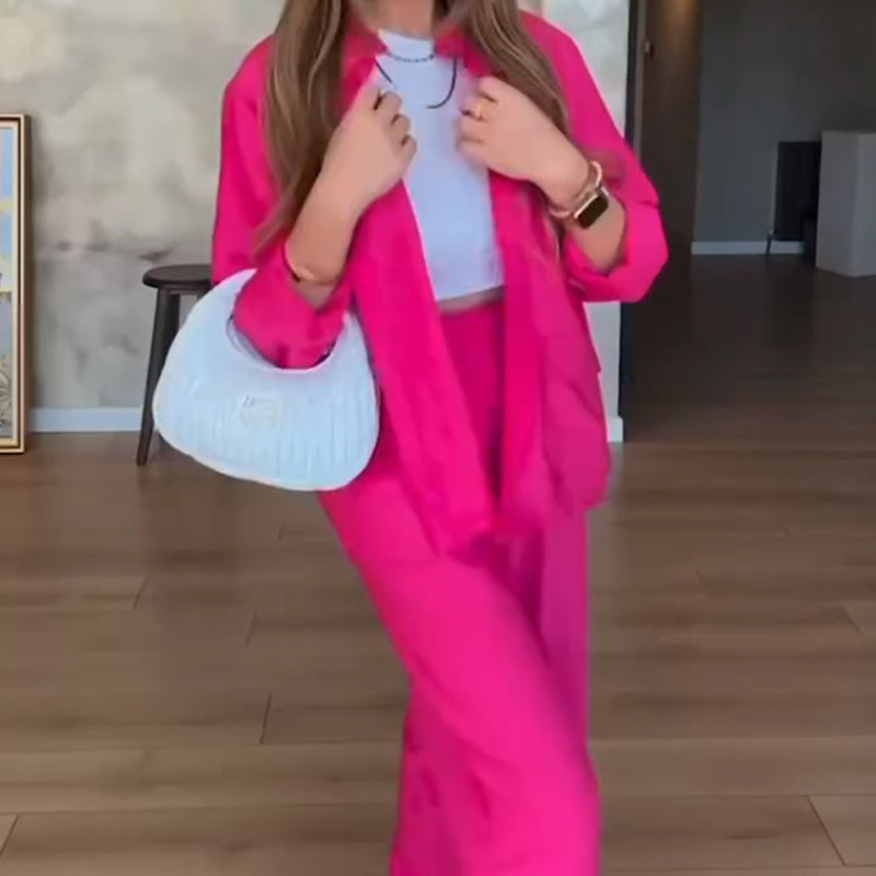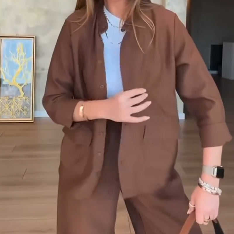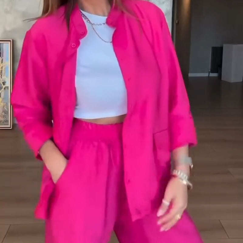Paketet innehåller: 1*Solid färg lös skjorta & byxor med hög midja Set