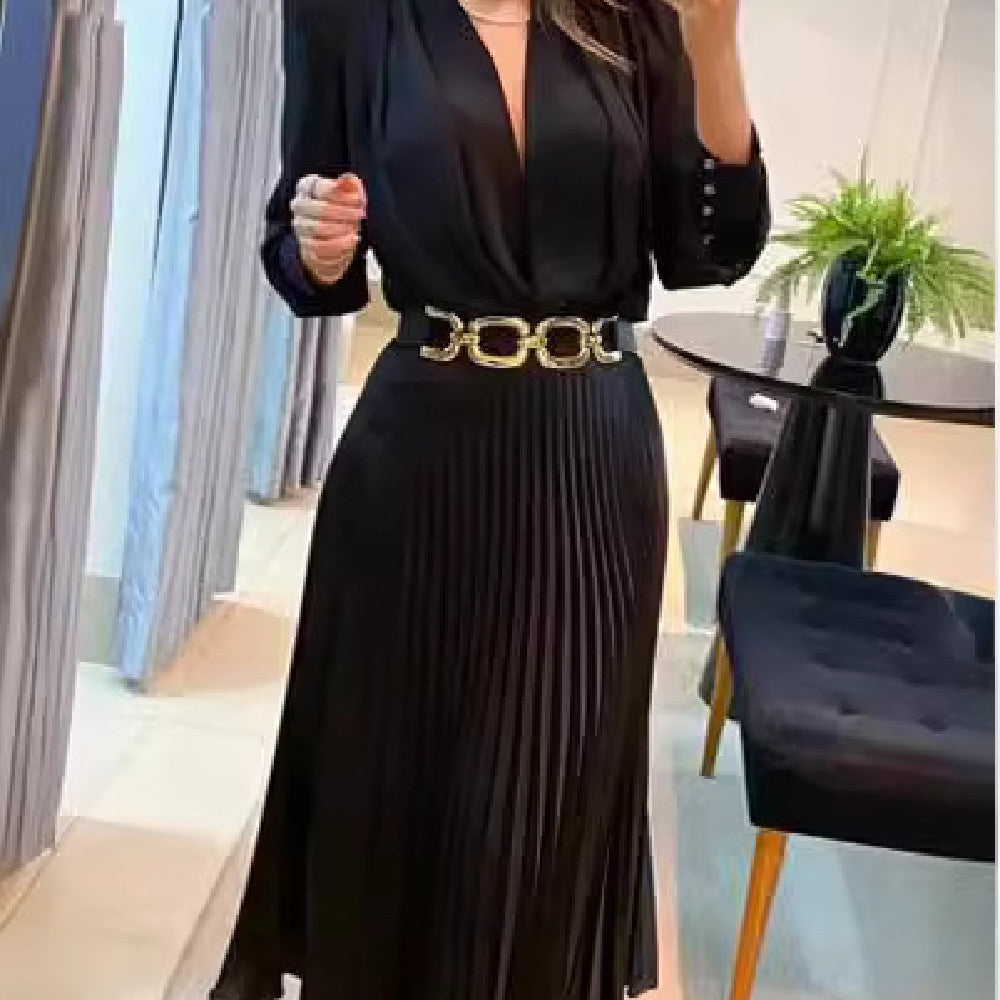 Ny Dam europeisk och amerikansk enfärgad plisserad långklänning i plusstorlek
