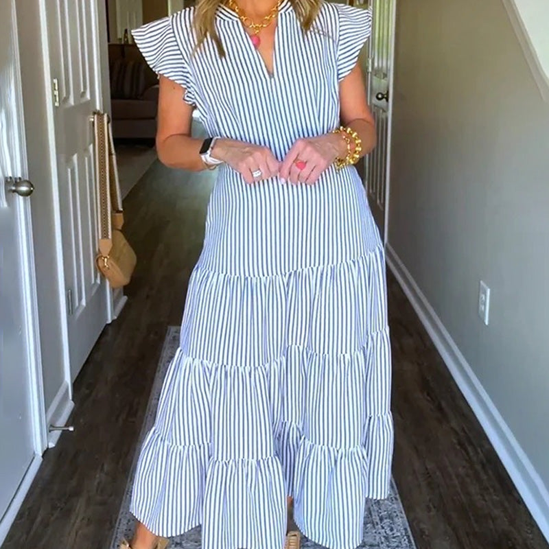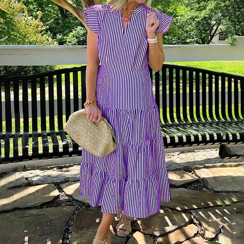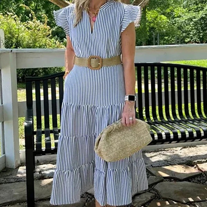 🏖️Sommarrea 49% RABATT🌼Randig midiklänning med volanger och skikt i dammodell