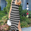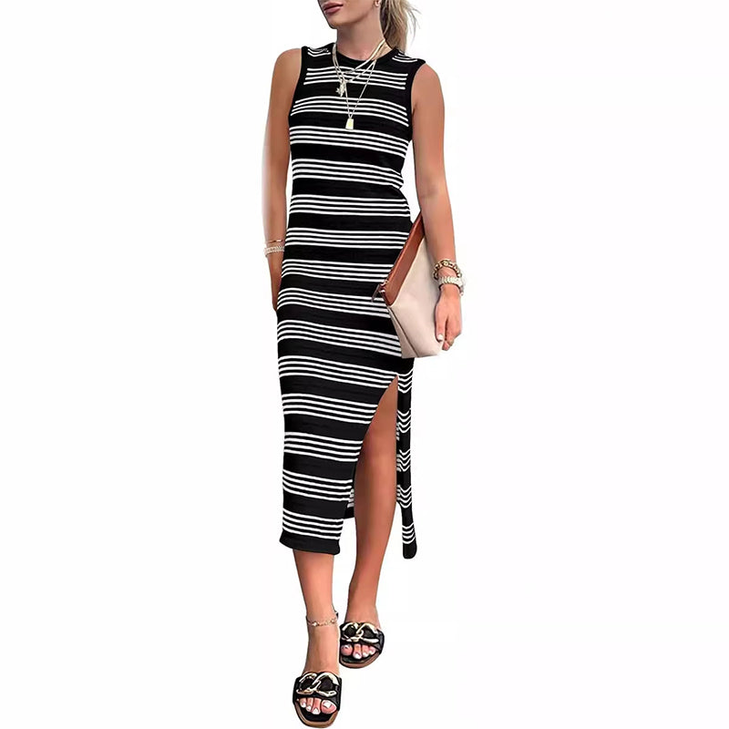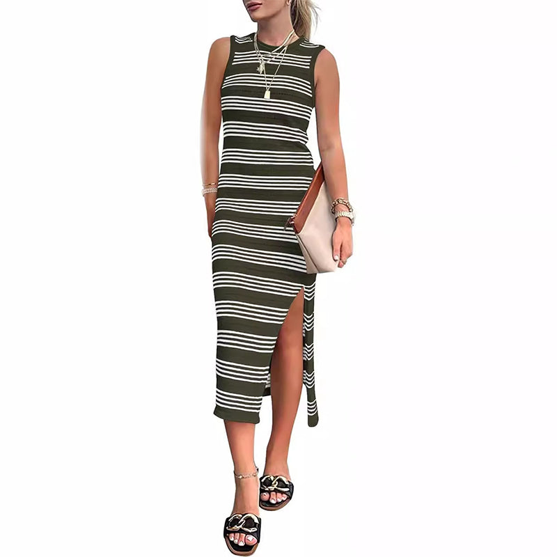 STYLISKT RANDIGT DESIGN: Denna midi-linneklänning har ett tidlöst randigt mönster och ger din garderob en modern och elegant look. Perfekt för avslappnade utflykter, strandturer och semestrar.