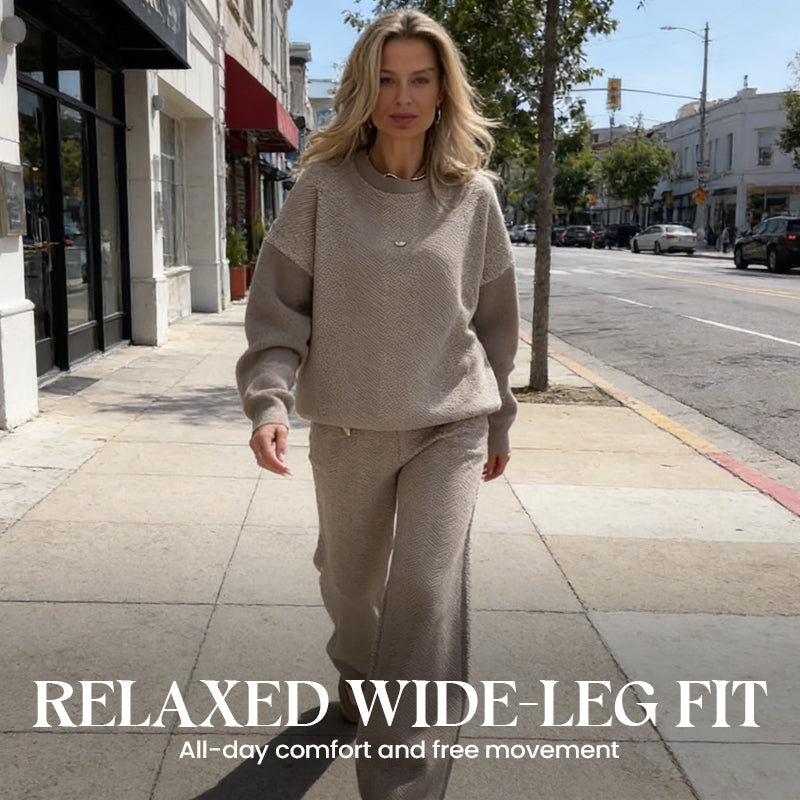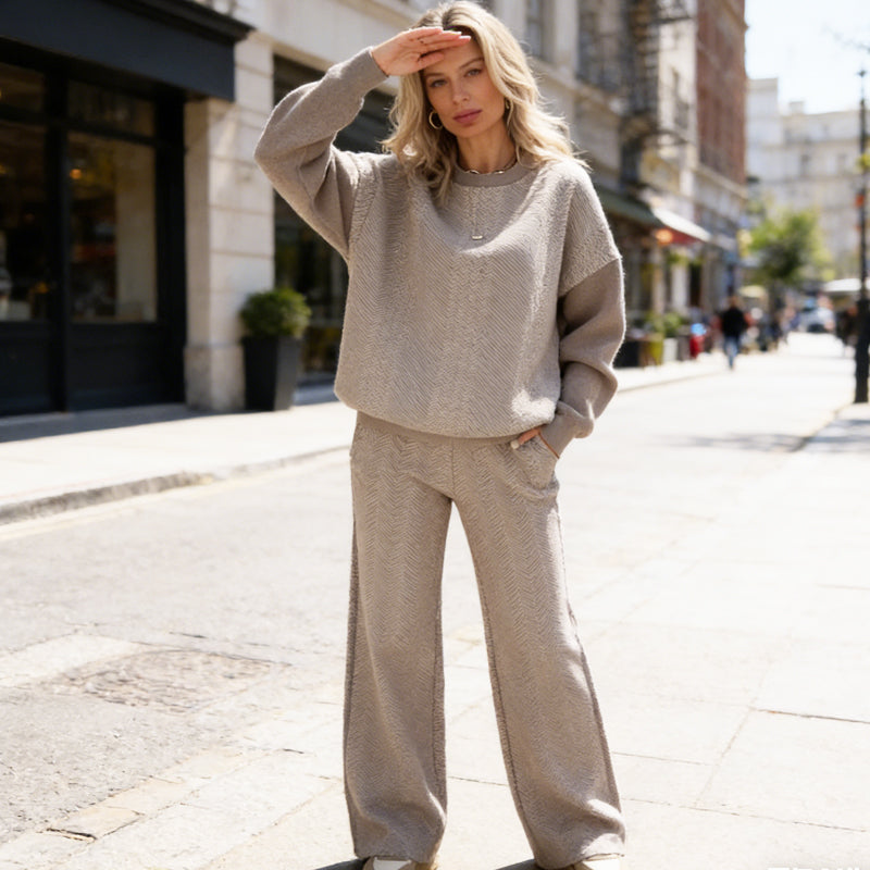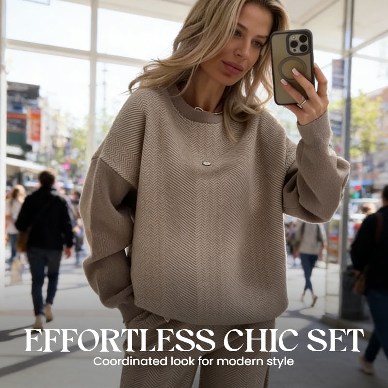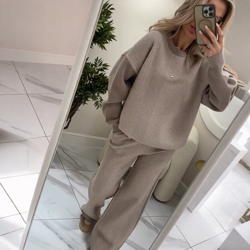 ELEGANT STRUKTURERAD DESIGN – Lyft din vardagsstil med subtil elegans. Det fina fiskbensliknande strukturerade mönstret ger en intressant visuell effekt och en exklusiv känsla, vilket skiljer detta set från vanliga loungewear-plagg.