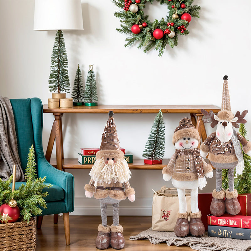 HANDGJORD JULDESIGN – Varje plyschdekoration är omsorgsfullt tillverkad med rika festliga detaljer som jultomten, snögubbar, renar, glittrande paljetter, klockor och halsdukar, vilket ger en rustik charm till din juldekoration.