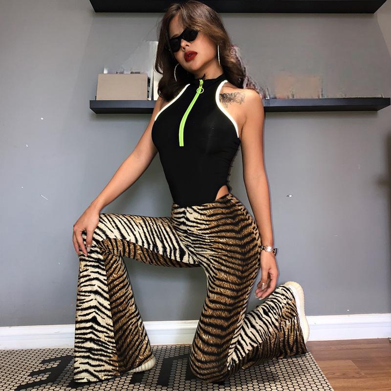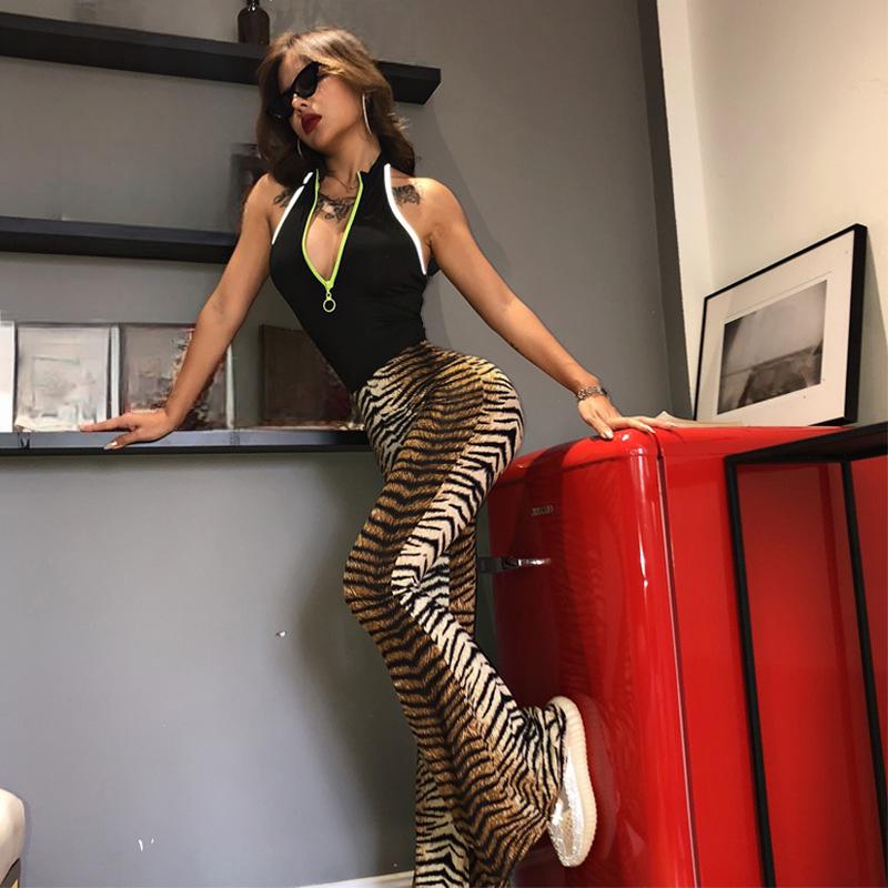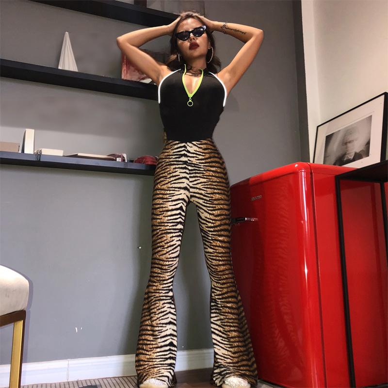 Dambyxor med hög midja, leopard- och tigermönster och utsvängda ben