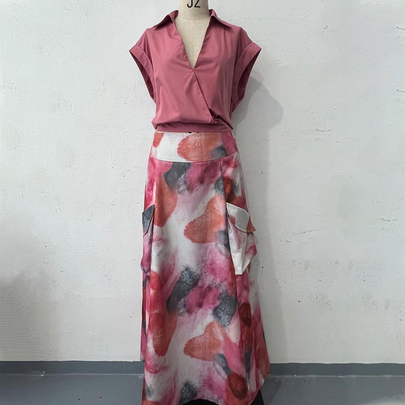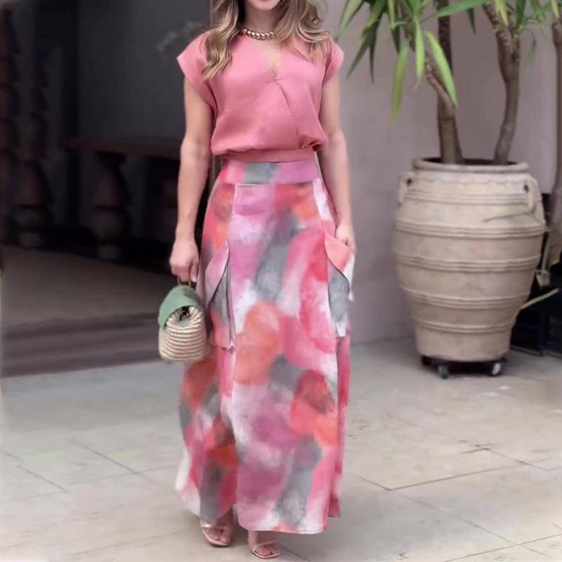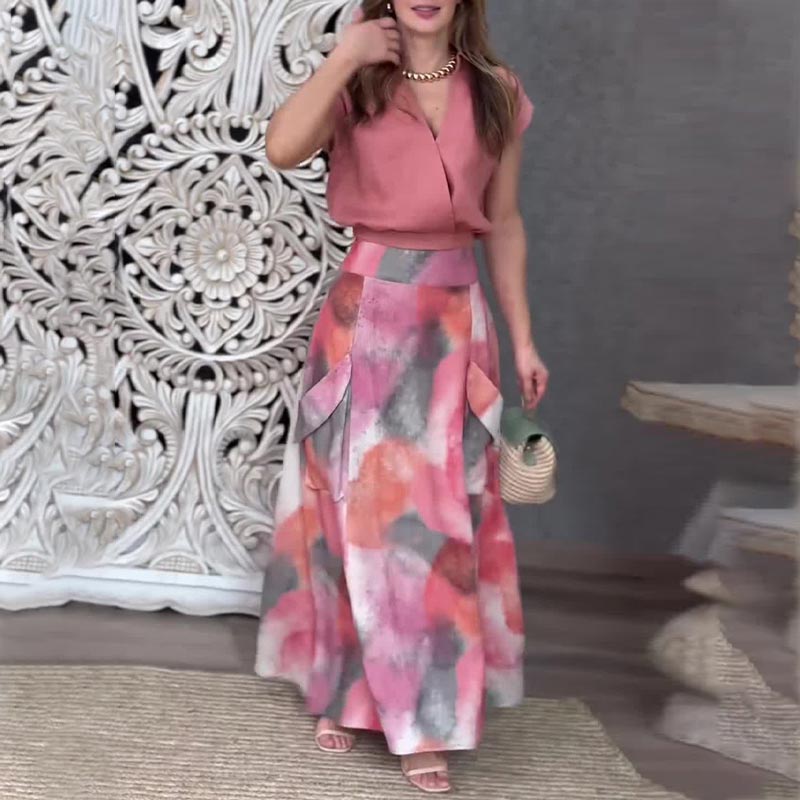 Elegant Casual V-ringad topp och kjol i 2 delar för kvinnor