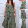 Dammode Ruffle Hem Spaghetti Top Drawstring Wide Leg Pants Set