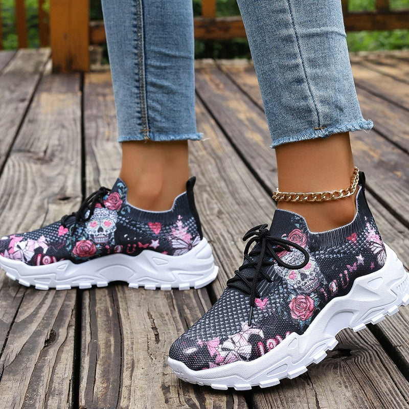 STYLISKT BLOMSTTRYCK - Dessa skor är designade med ett livligt blommönster och ger en färgklick och stil till alla avslappnade kläder, vilket gör dem till ett utmärkt val för både komfort och mode.