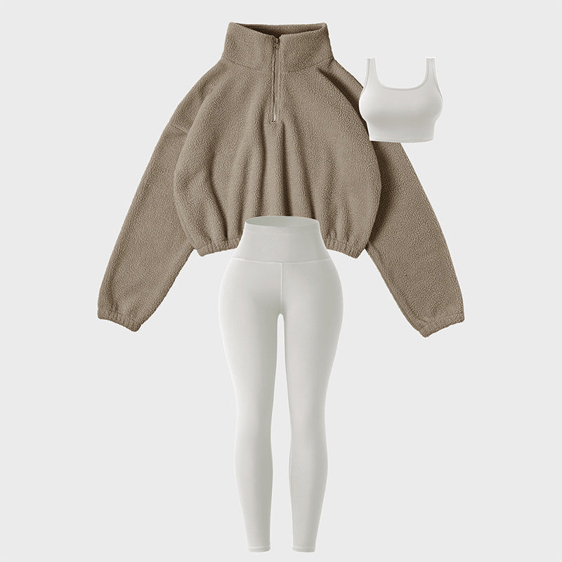 Högmidjad sportset i 3 delar för kvinnor, för yoga och avkoppling