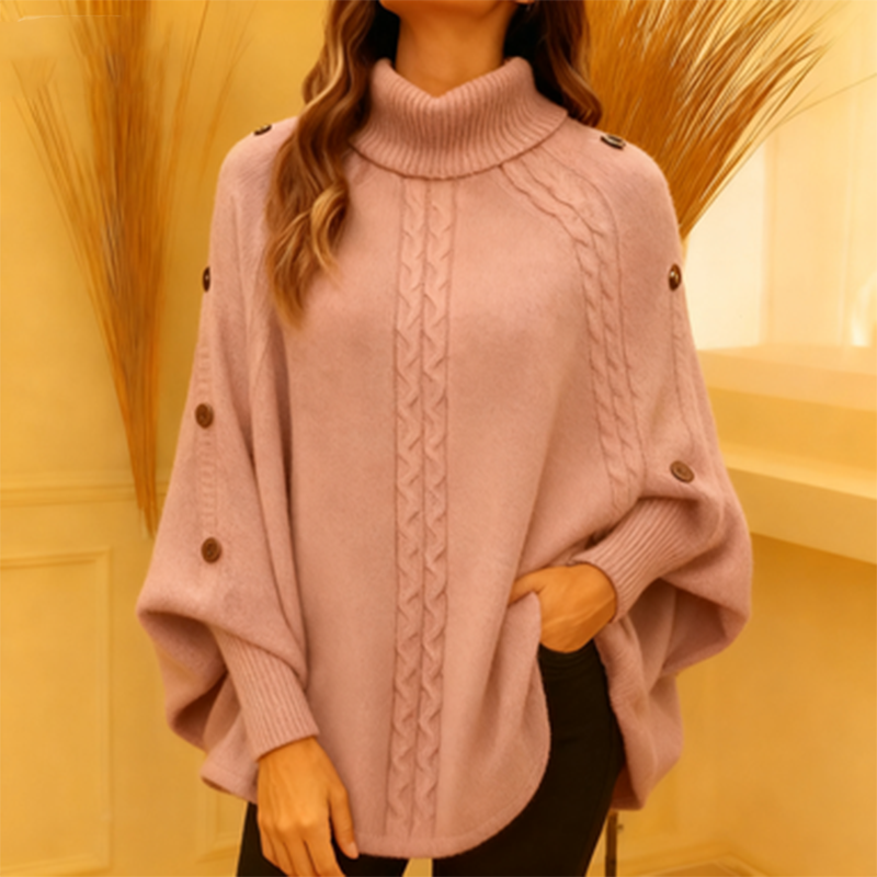 Paketet innehåller: 1* Elegant ponchotröja med hög hals för kvinnor