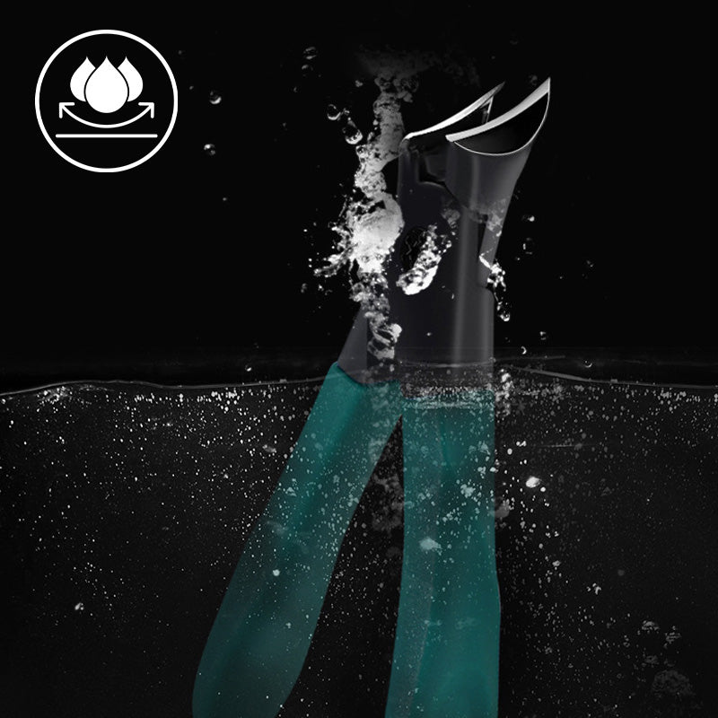 KOMFORTABELT GREPP: Det halkfria, greppvänliga handtaget ger bättre kontroll och stabilitet vid trimning. Detta ger en bekvämare och säkrare klippupplevelse, även för personer med nedsatt greppstyrka.