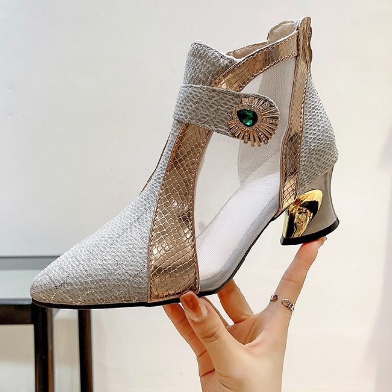 Vintage mesh-design, klumpiga klackar, ankelstövlar