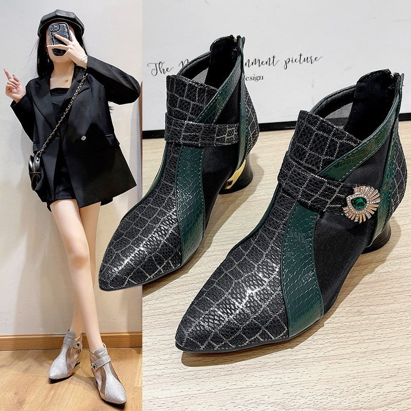 Paketet innehåller: 1×Vintage Mesh Design Chunky Heel Ankle Boots