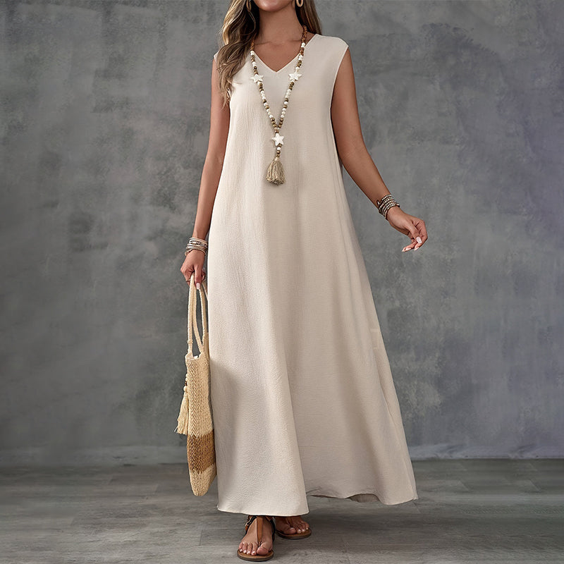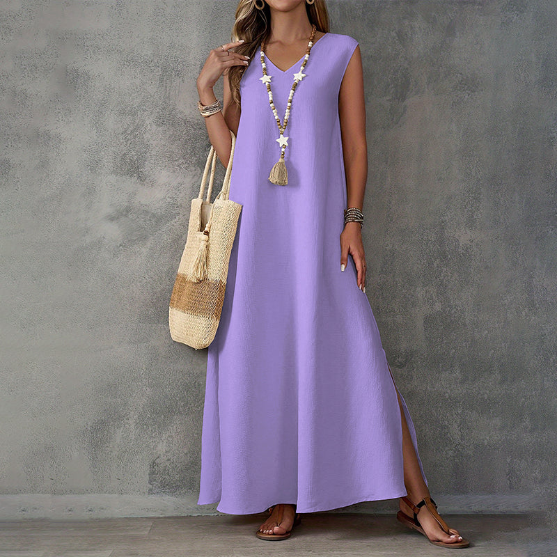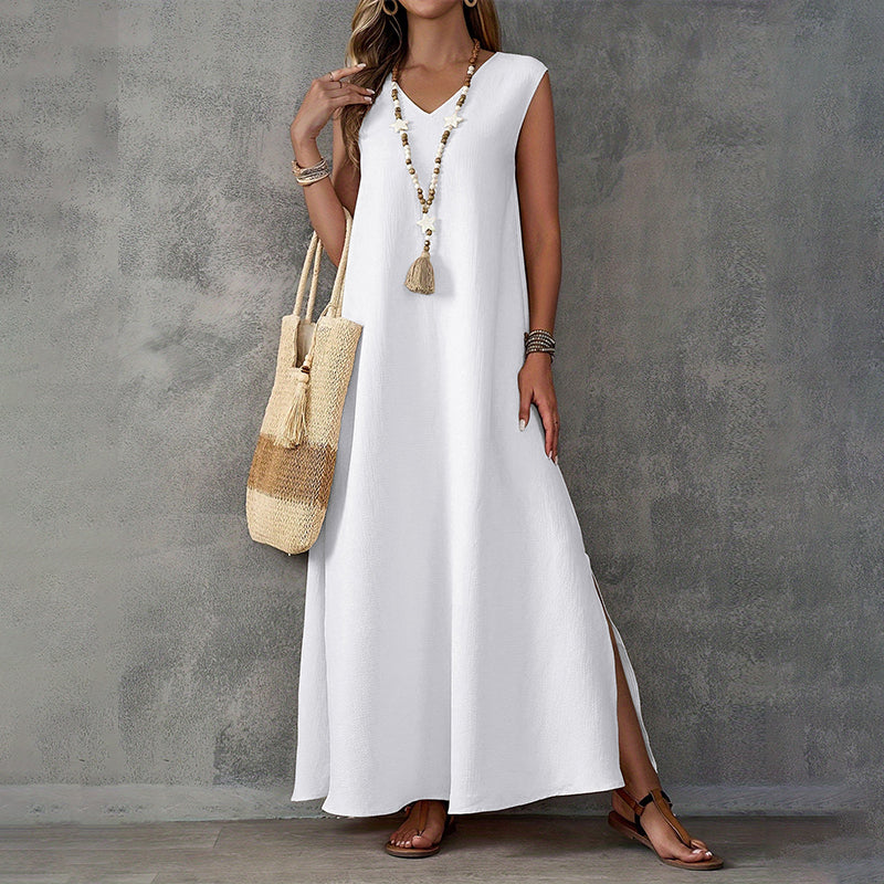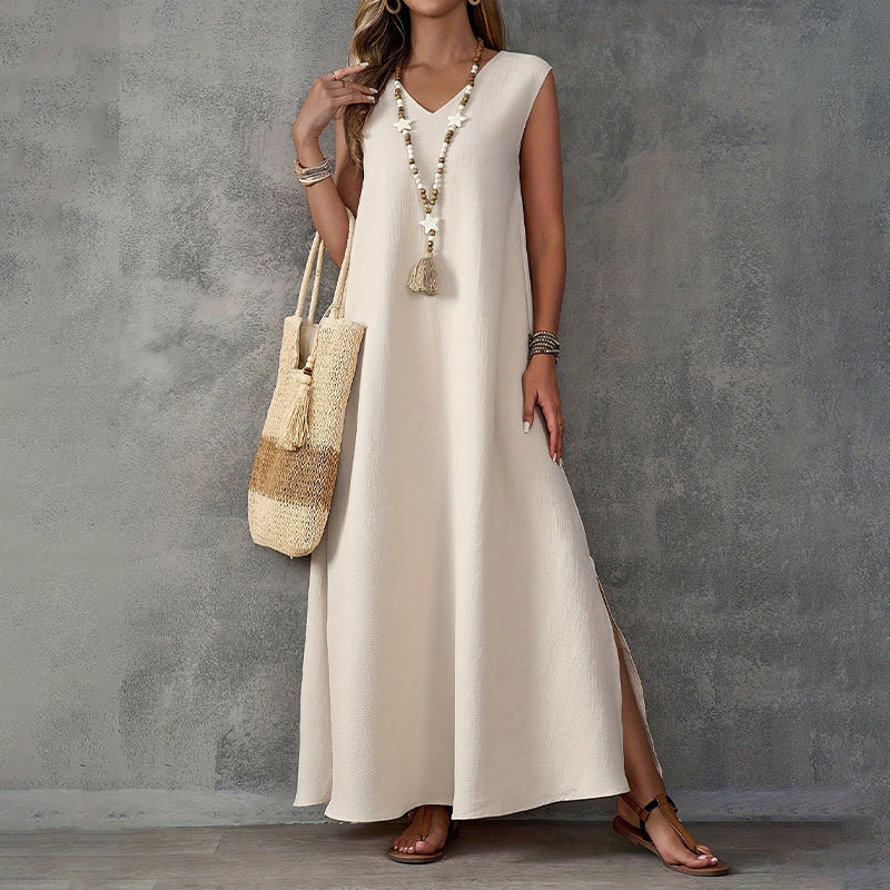 Ärmlös klänning med V-ringning och sidoslits för kvinnor