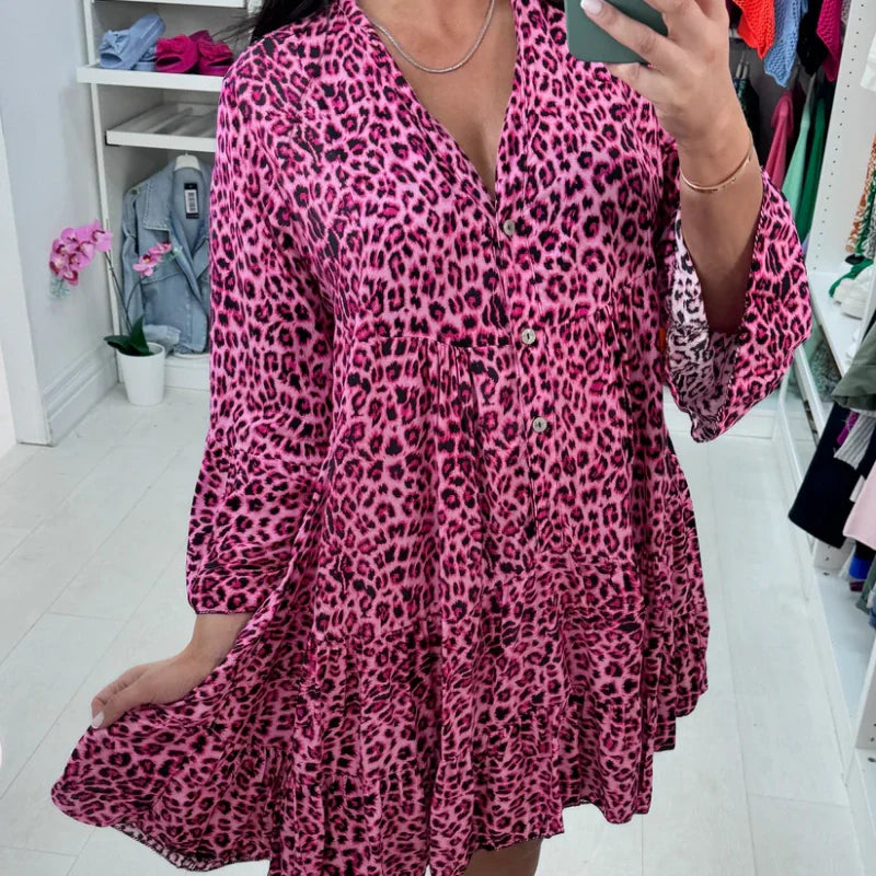 TIDLÖST LEOPARDMÖNSTER - Denna klänning har en slående leopardmönstrad design som smidigt blandar klassisk stil med modern flair. Det djärva, iögonfallande mönstret ger en touch av sofistikering till din garderob.