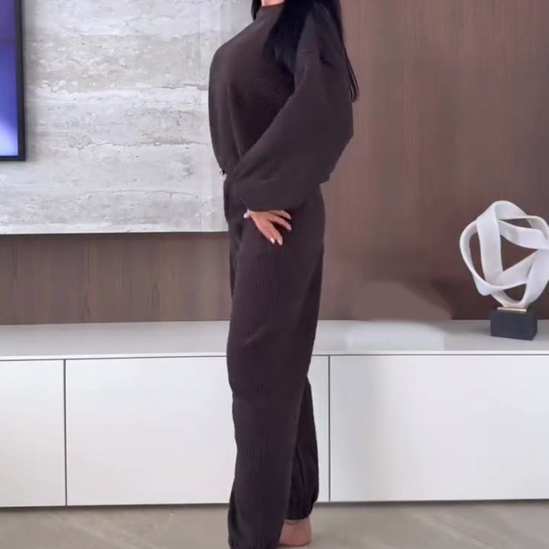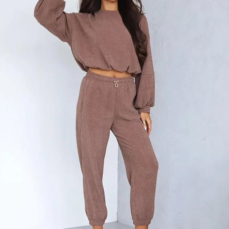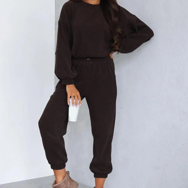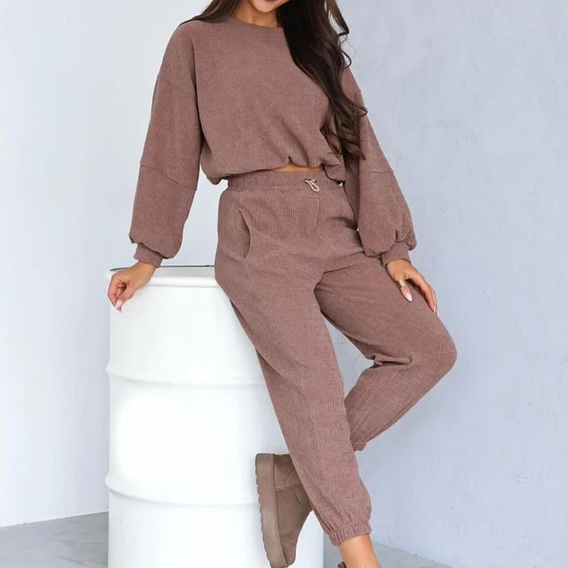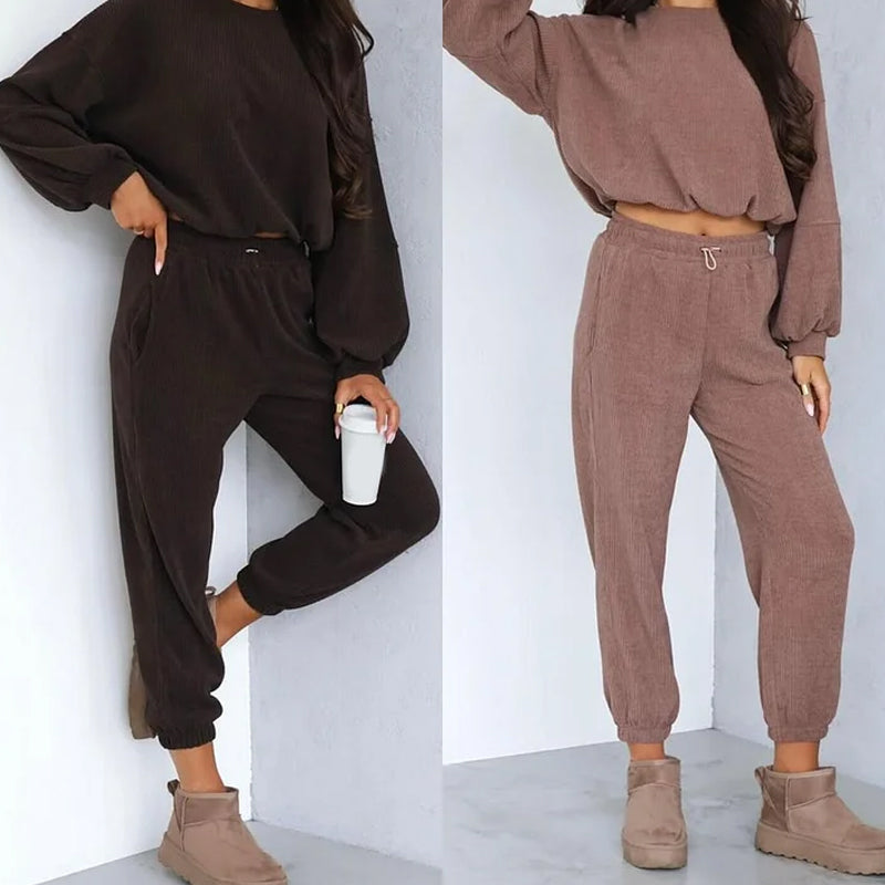 Damset i corduroy med kort topp och joggingbyxor