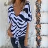 V-ringad, randig, tryckt, avslappnad, kortärmad topp för kvinnor
