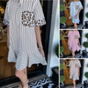 1 × Moderiktig Randig Skjortklänning med Lappmönster och Leopardmönster för Kvinnor
