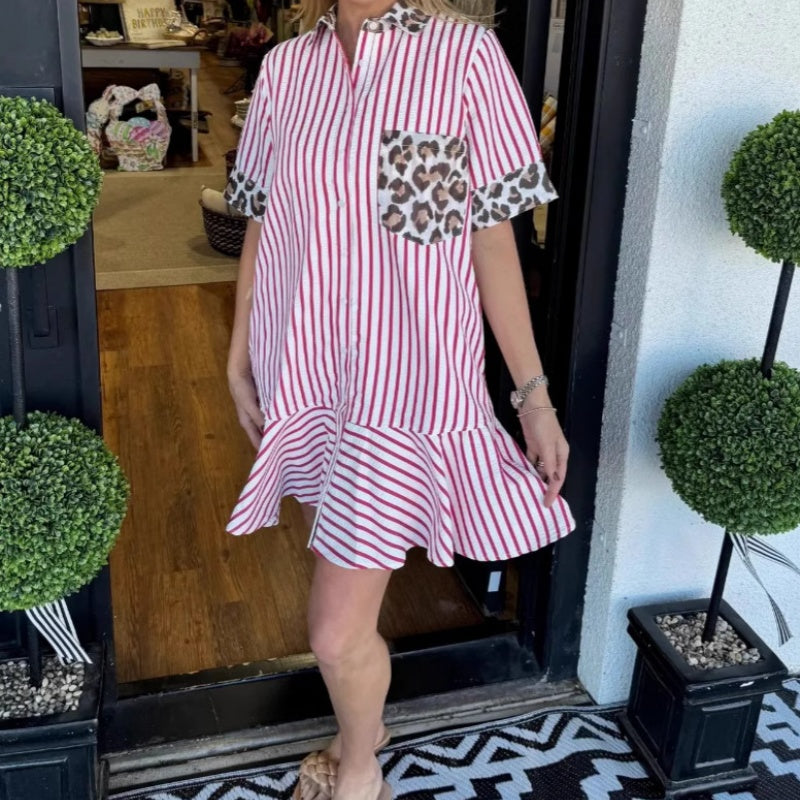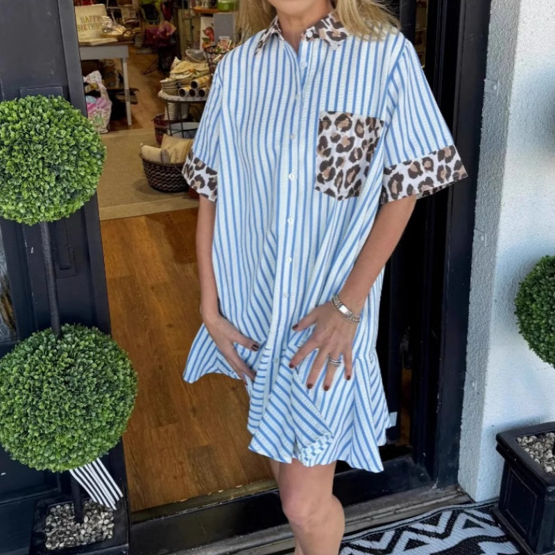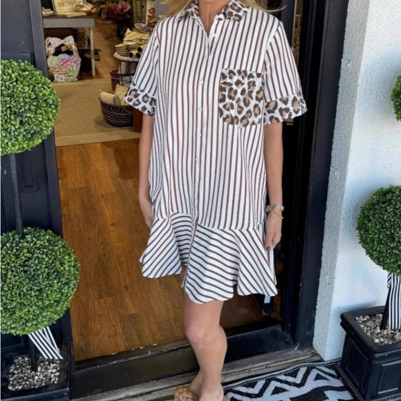 Moderiktig Randig Skjortklänning med Lappmönster och Leopardmönster för Kvinnor