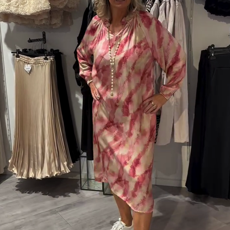 Mjuk rosa långärmad klänning för kvinnor