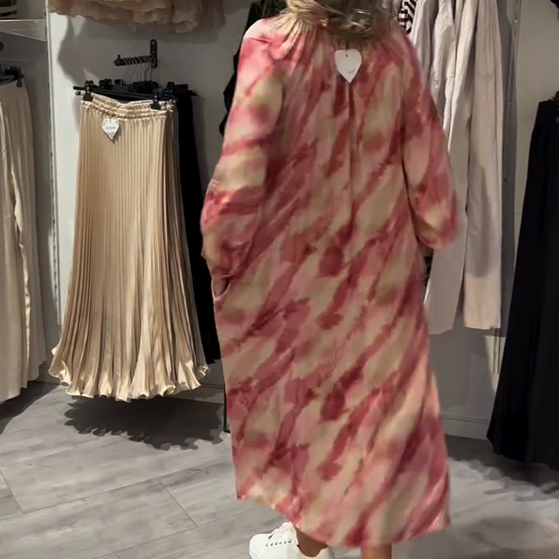 Mångsidig design med långa ärmar: De långa ärmarna ger ett lätt solskydd eller extra värme under svalare dagar, vilket gör klänningen lämplig för våren, sommarkvällar eller luftkonditionerade inomhusutrymmen.