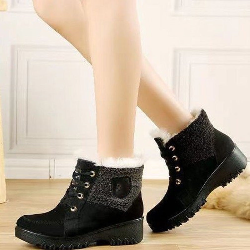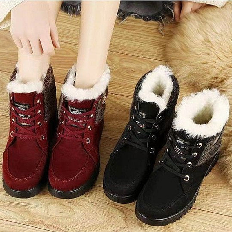 Paketet Inkluderar: 1 par * Kvinnors vintermysiga varma tjockfodrade snöstövlar