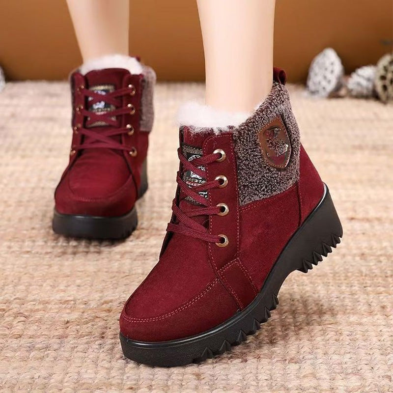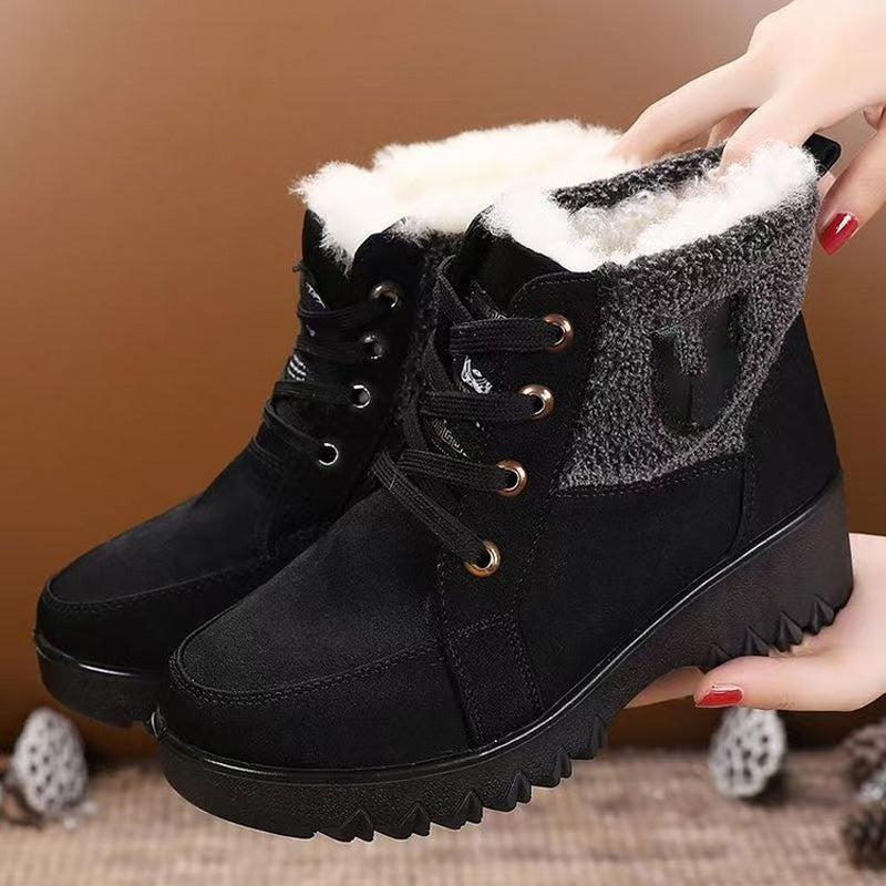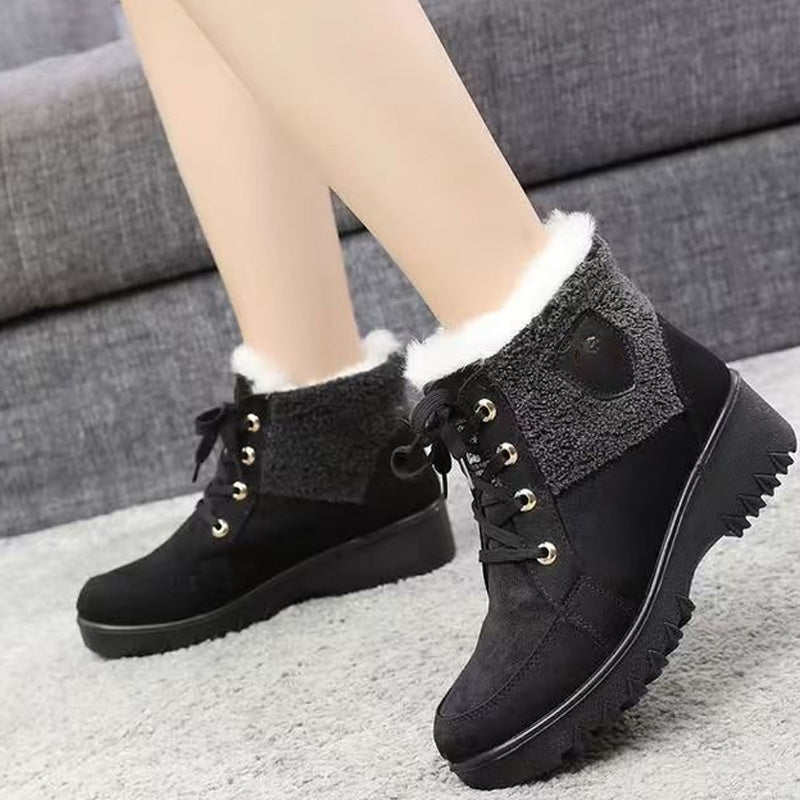 Kvinnors vintermysiga varma tjockfodrade snöstövlar