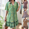 Kvinnors Miniklänning med Blommönster, V-hals och Kort Ärme