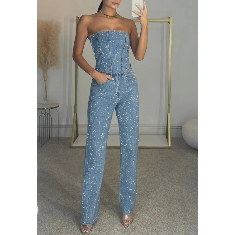 ✨2-delat set med topp och byxor i glitter för kvinnor