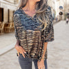 Förhöj din garderob med vår Women's Loose V-Neck Leopard Print Half Sleeve Blouse!