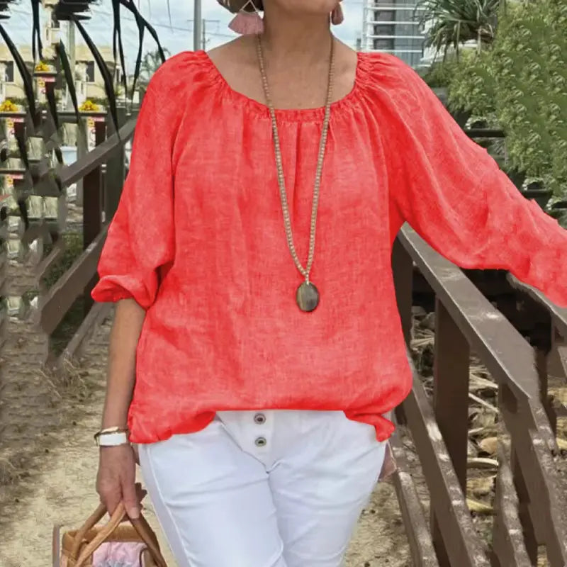 Kvinnors stora storlek Casual bomull linne topp