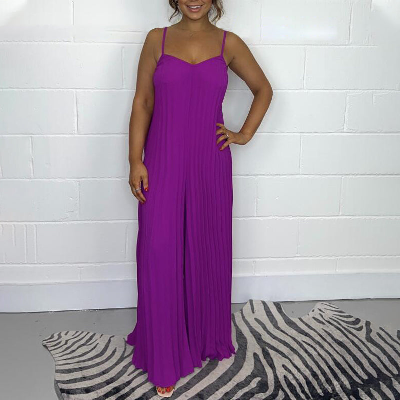 đ Chic och elegant plĂ€terad lös spaghetti rem jumpsuit
