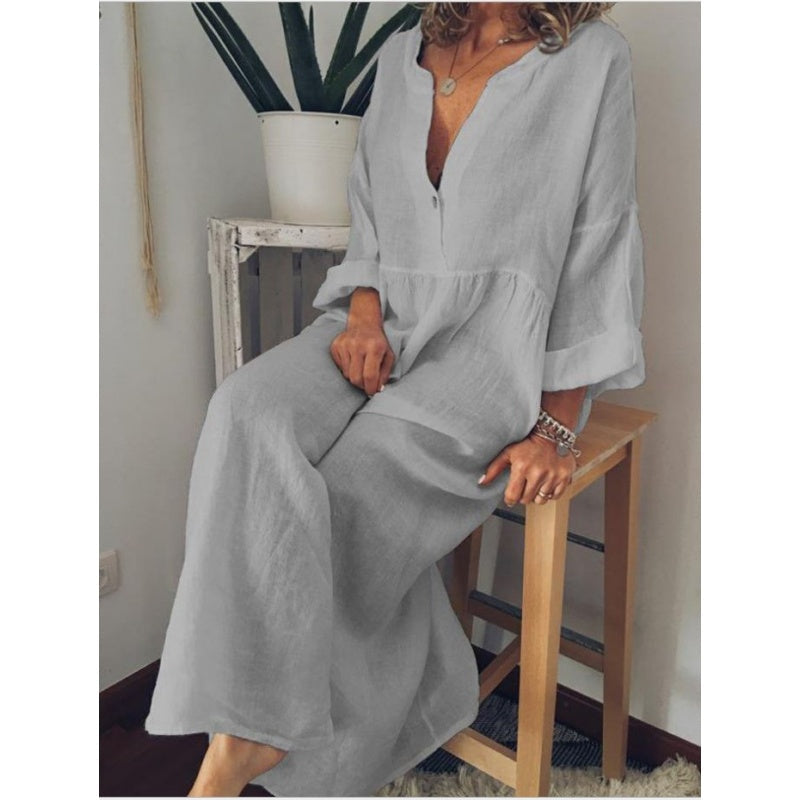 Kvinnor Sommar Bomull Linne Stor Swing Lös Klänning