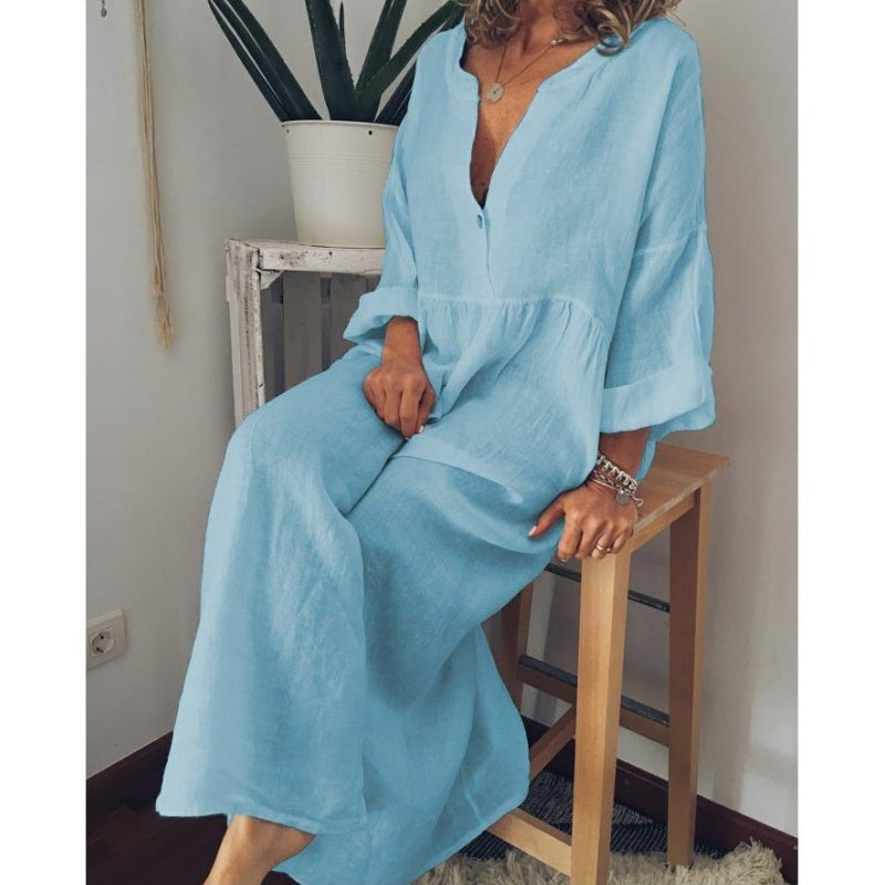 LÄTT ATT SKÖTA FÖR ALLTID: Det slitstarka bomullslinnetyget är lätt att sköta och kräver minimalt med underhåll. Tvätta helt enkelt i maskin för problemfri rengöring och se till att din klänning förblir fräsch och redo att bära när du behöver den.