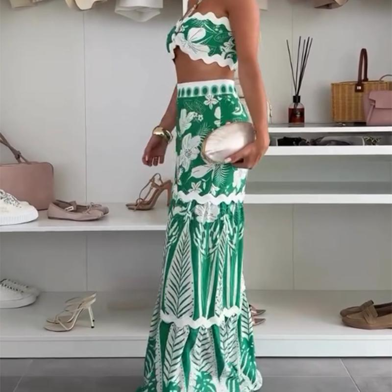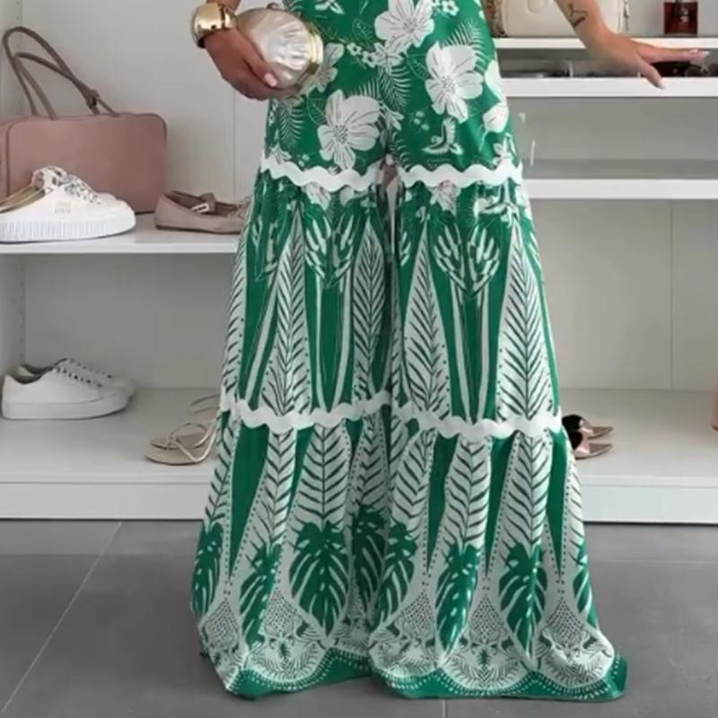 2-delat set för kvinnor: Bikiniöverdel och vida byxor med tryck