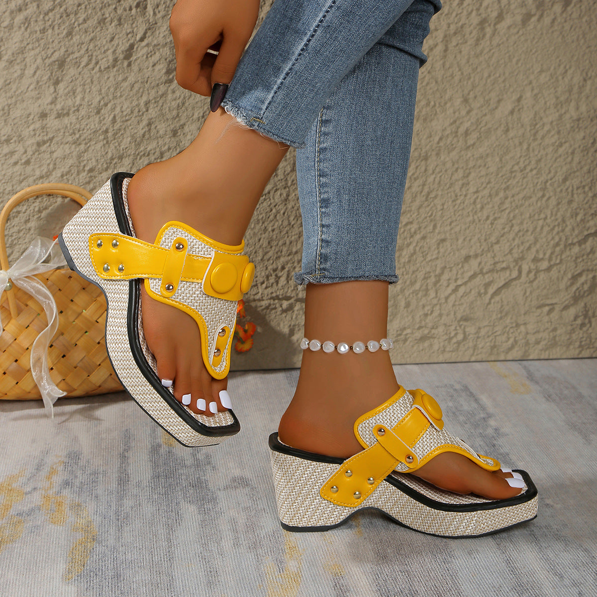 FLIP FLOP TOE DESIGN - SÄKER OCH STILIG PASSFORM: T-tåklämmans design erbjuder både stil och funktionalitet, vilket ger dina fötter en stabil och säker passform utan att kompromissa med elegansen. Denna flip flop-tåfunktion omsluter foten bekvämt, vilket gör dessa sandaler idealiska för avslappnade utflykter. Den luftiga, öppna stilen förbättrar fotventilationen och ger en minimal, somrig känsla.
