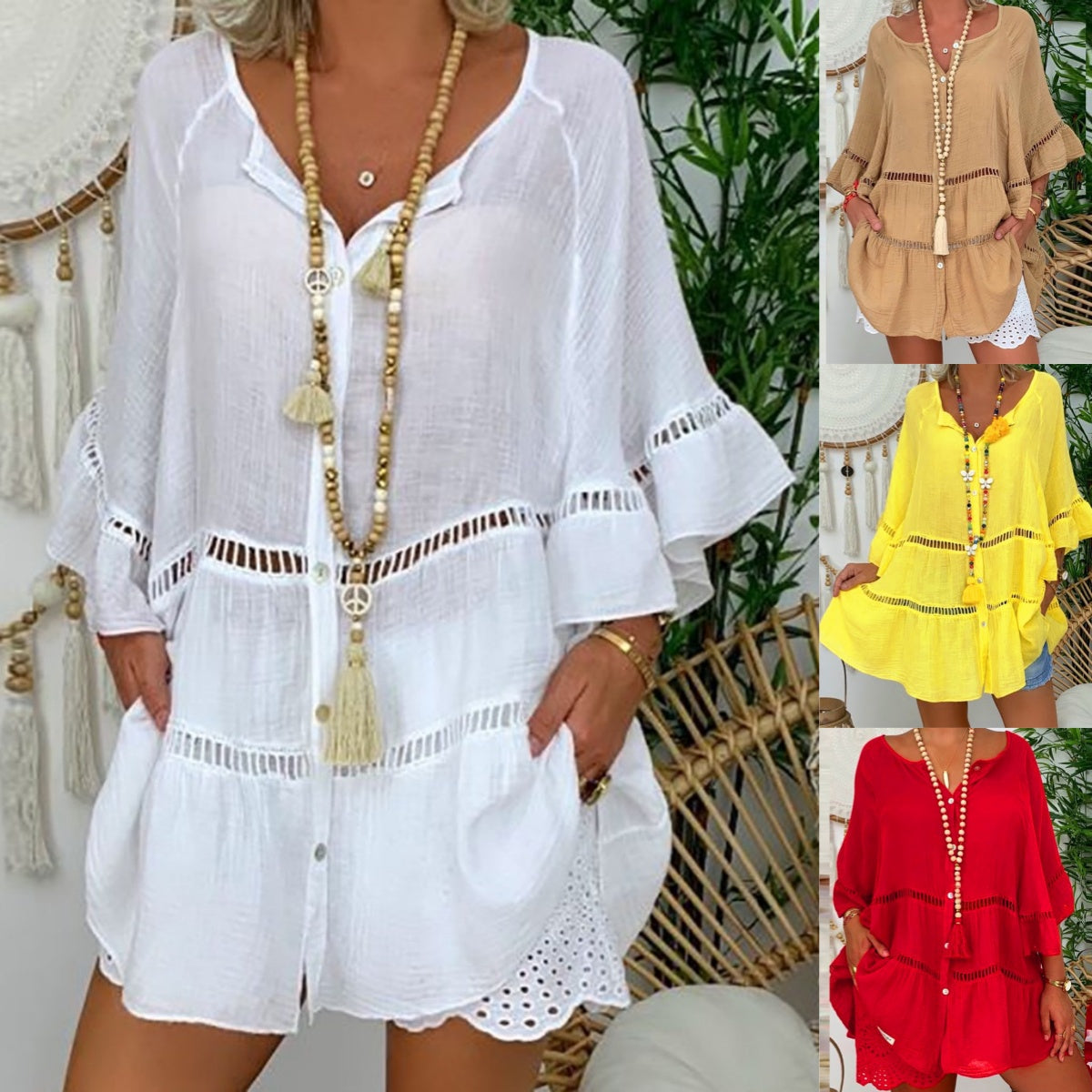 Mjukt och andningsbart tyg: Klänningen är tillverkad i ett mjukt och andningsbart tyg som ger komfort under hela dagen och håller dig sval i varmare väder samtidigt som det ger en lätt och luftig känsla för alla tillfällen.