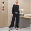 Paketet innehåller: 1 * Kvinnors avslappnade slitsade stickade toppar med hög midja med breda benbyxor tvådelad uppsättning