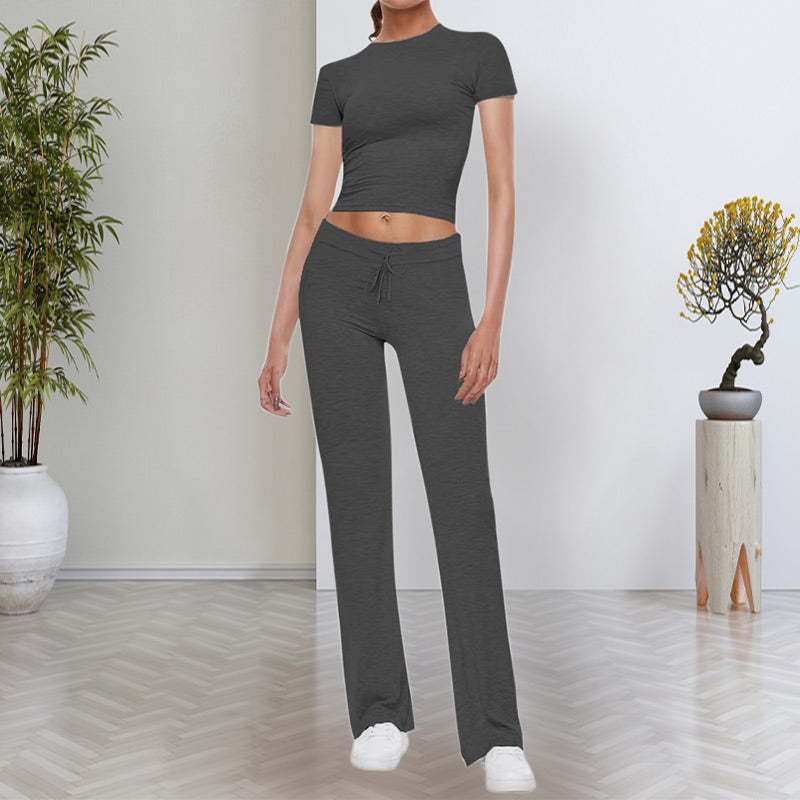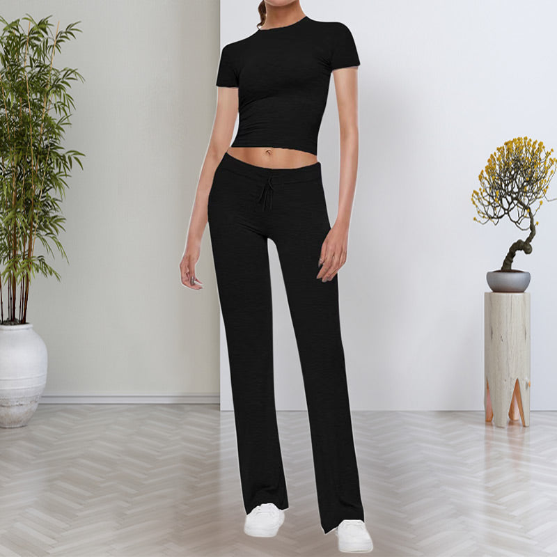 Women's Casual Solid Color T-Shirt & Straight Leg Pants Set