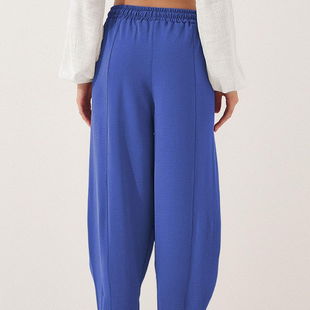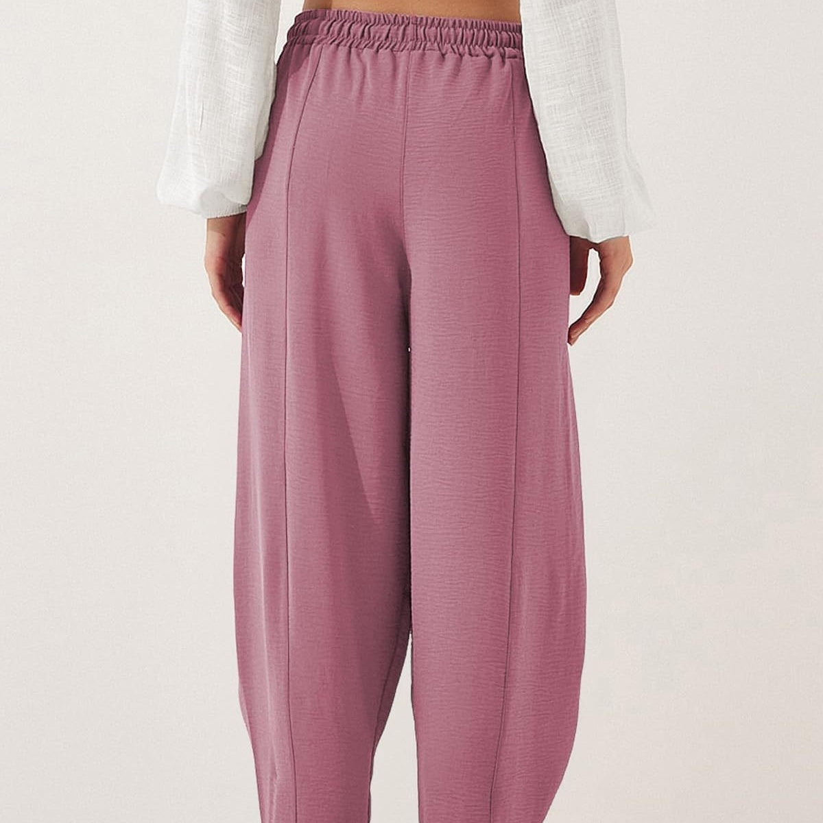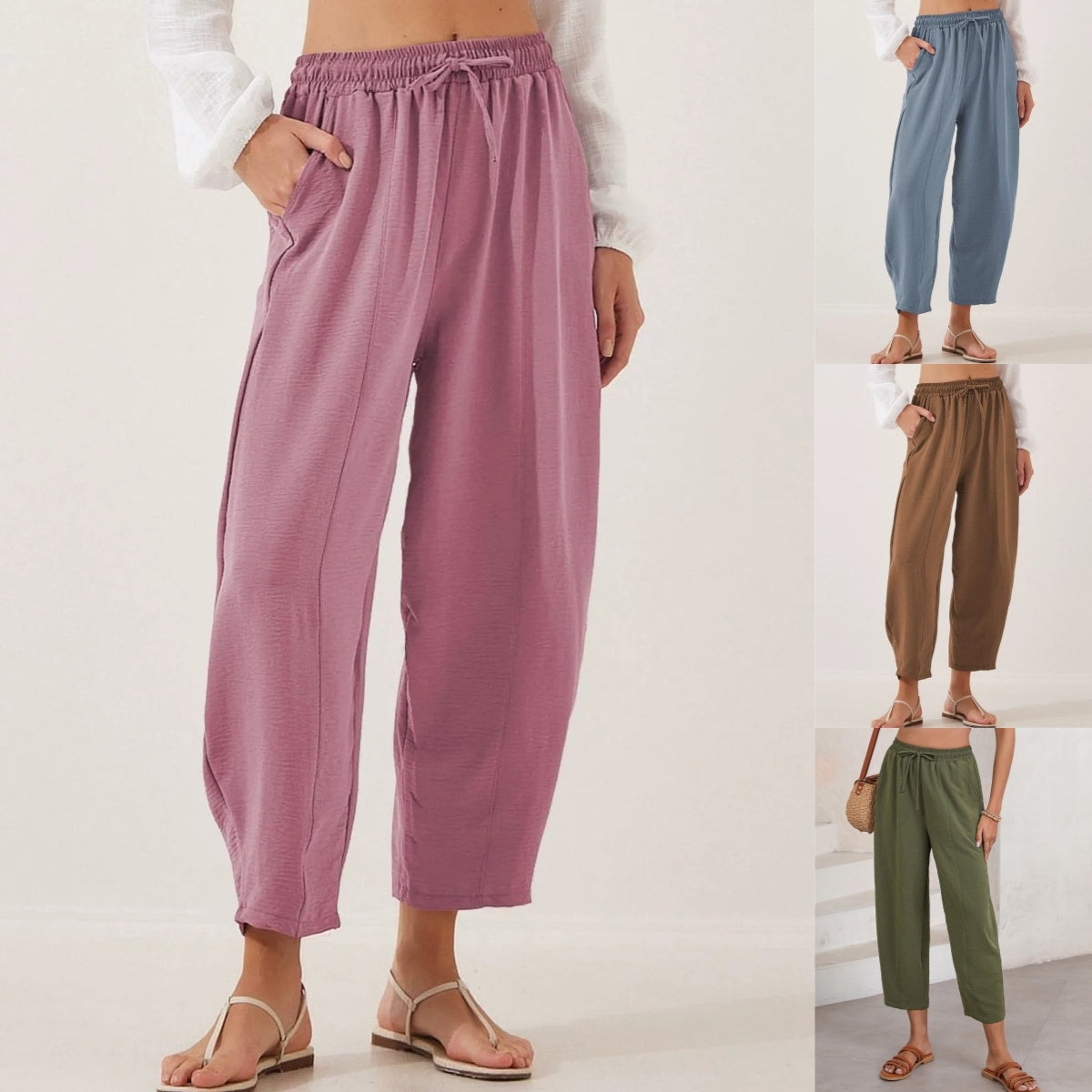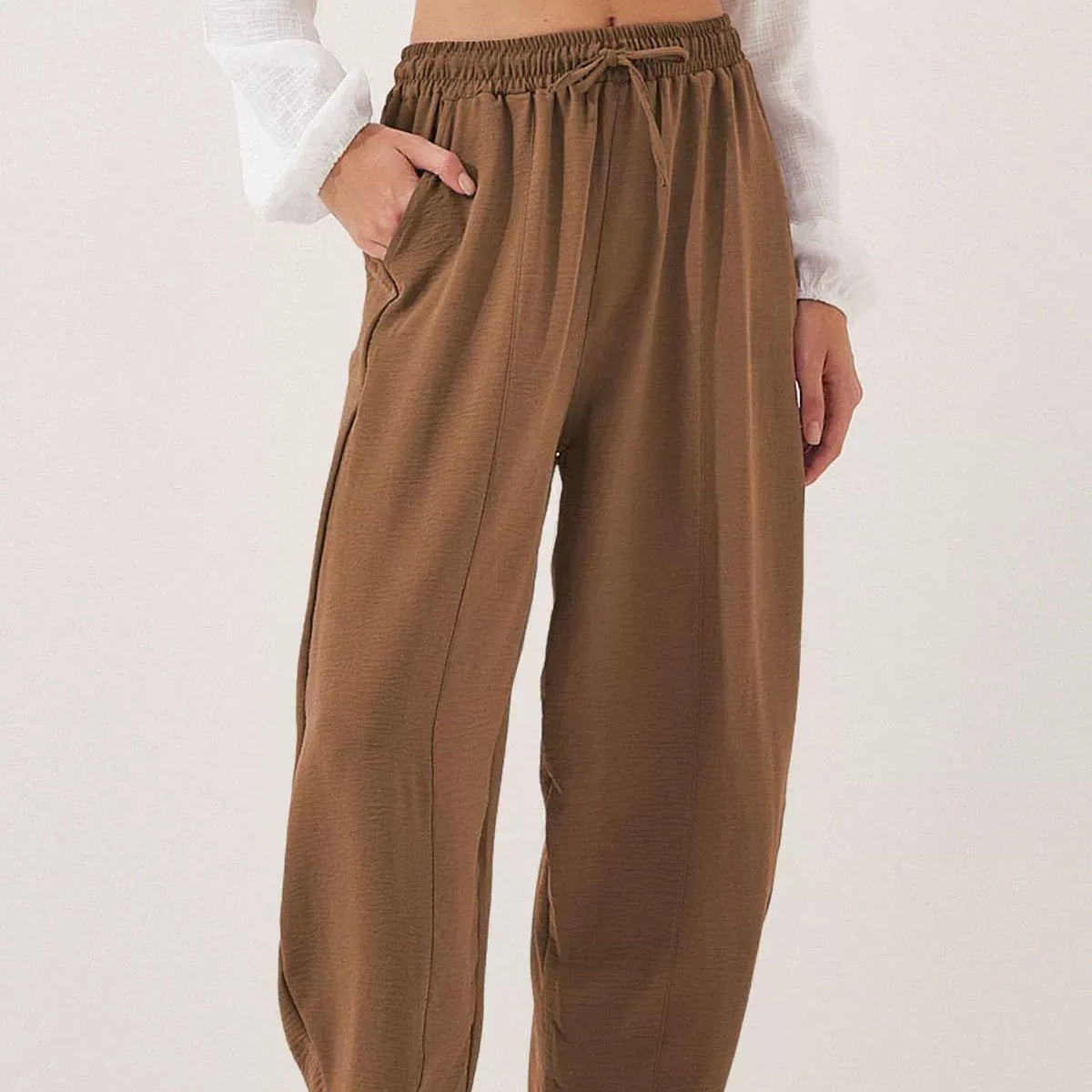 Moderna, rymliga dambyxor i bomull och linne med dragsko