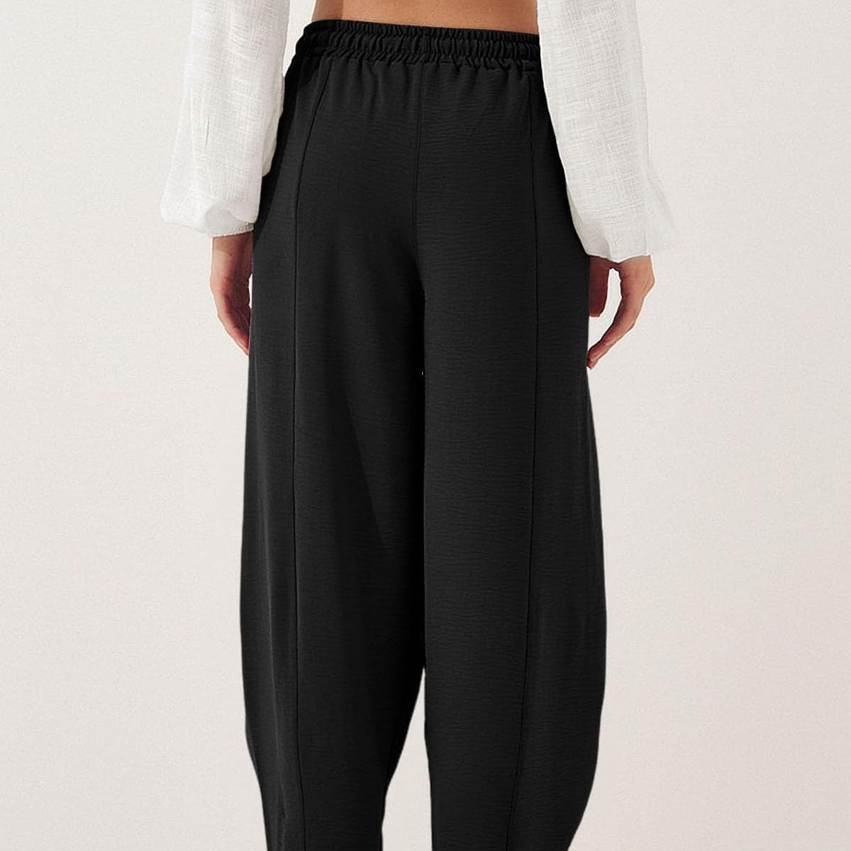BEKVÄM OCH AVSLAPPAD PASSFORM: Den vida silhuetten ger en avslappnad, lös passform som är bekväm hela dagen. Dessa byxor är perfekta för att slappa i eller springa ärenden och erbjuder både stil och bekvämlighet.