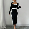 Women's Colorblock Square Neck Bodycon Midi Dress