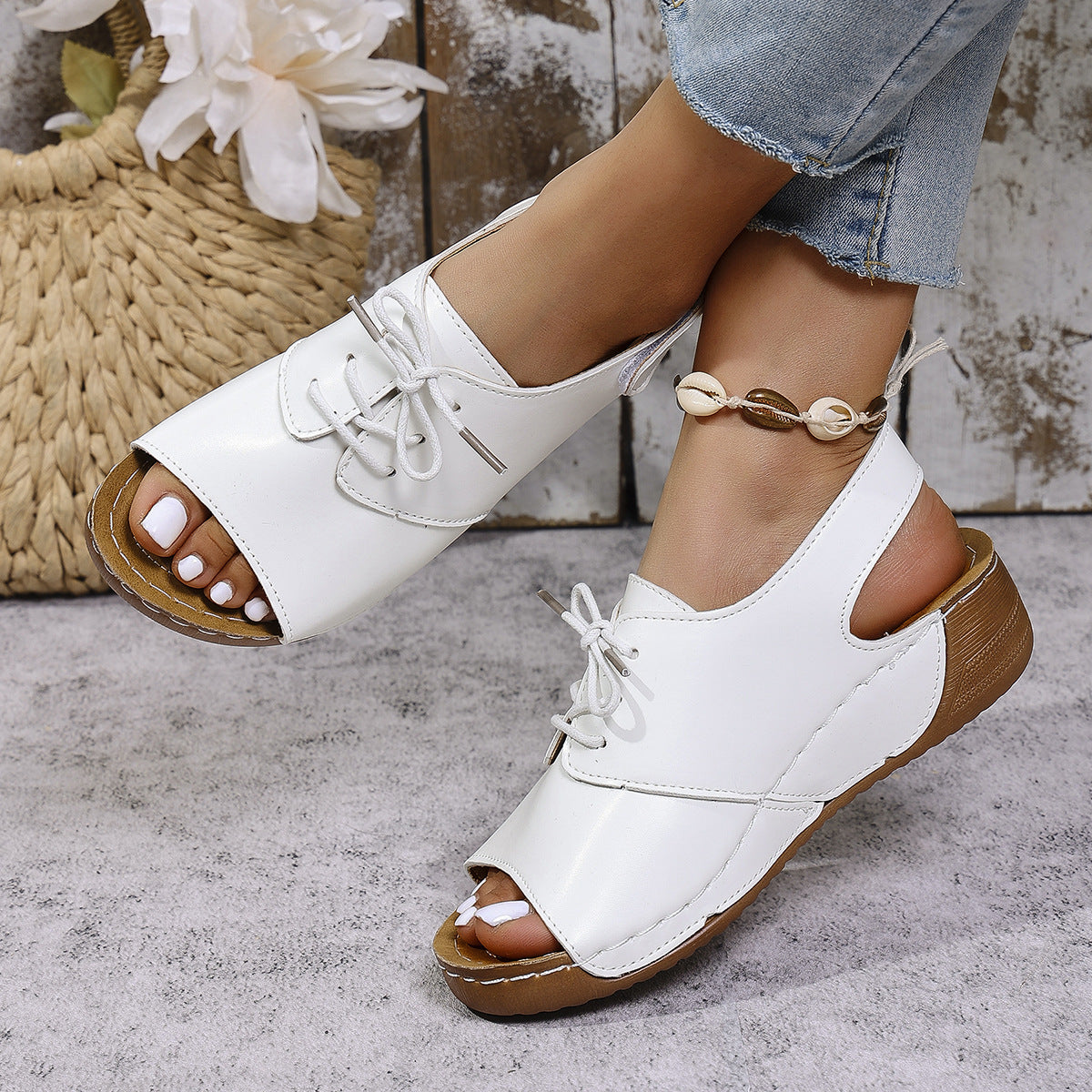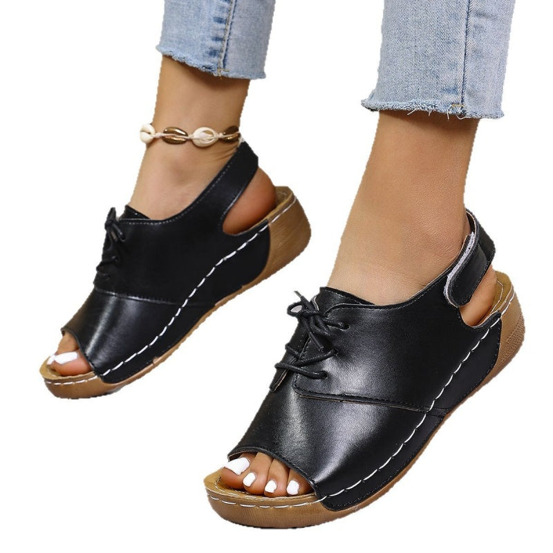 HÖJ DIN CASUAL STYLE: Dessa sandaler med öppen tå har en modern silhuett med fina snörningsdetaljer och är designade för enkel chic. Oavsett om du klär upp dig eller ner dig ger de en polerad touch till alla outfits - perfekt för dig som vill ha komfort utan att offra stilen.